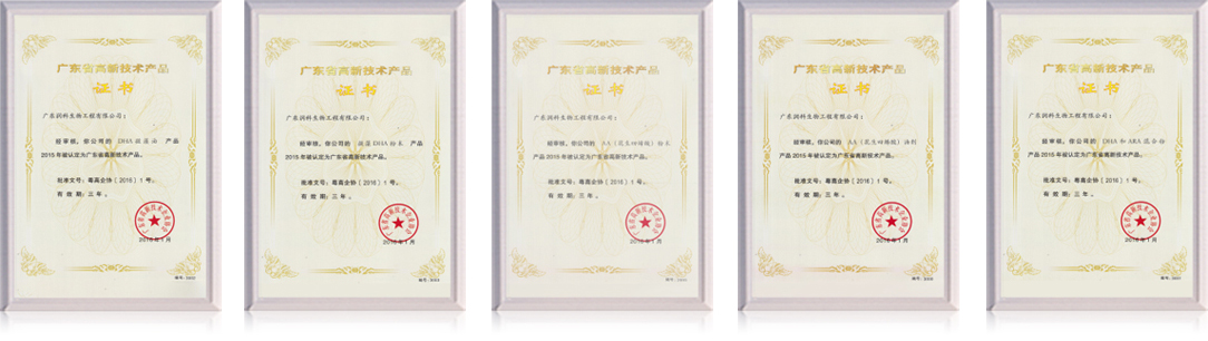 DHA油劑、粉劑,ARA油劑、粉劑,混合粉均被認定為廣東省高新技術產(chǎn)品