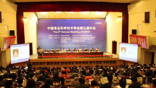 ??????? 2012年10月15日,中國(guó)食品科學(xué)技術(shù)學(xué)會(huì)第九屆年會(huì)在哈爾濱召開,來自國(guó)內(nèi)外高等學(xué)校、科研院所及食品企業(yè)的500余名專家學(xué)者共同交流研討食品科學(xué)、食品安全、食品工程領(lǐng)域的前沿性科學(xué)技術(shù)問題。?