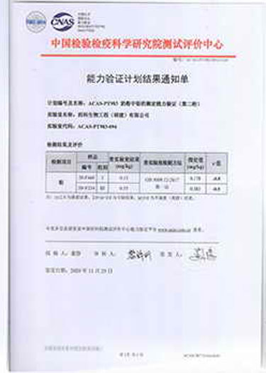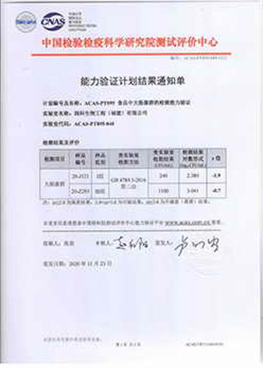 公司檢測(cè)能力通過了中國(guó)檢驗(yàn)檢疫科學(xué)研究院測(cè)試評(píng)價(jià)中心的驗(yàn)證