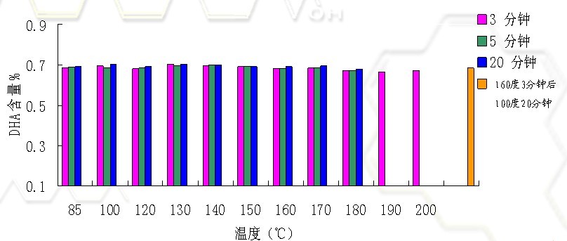 ??????? 1、在80-200℃范圍內(nèi),模擬常用烹調(diào)方式對(duì)DHA的穩(wěn)定性進(jìn)行考察。